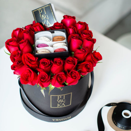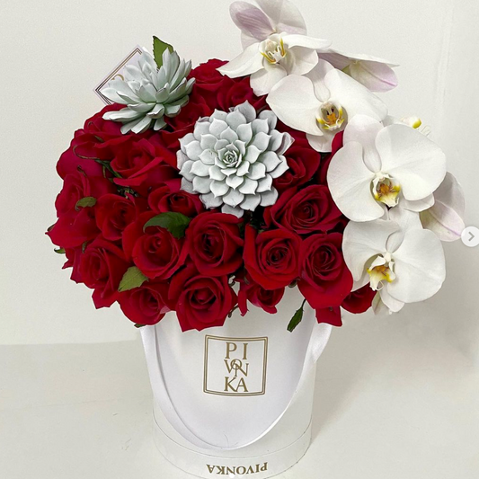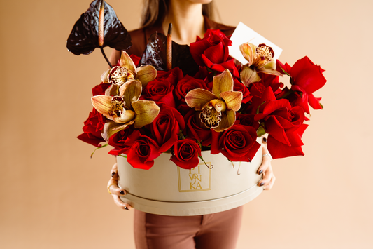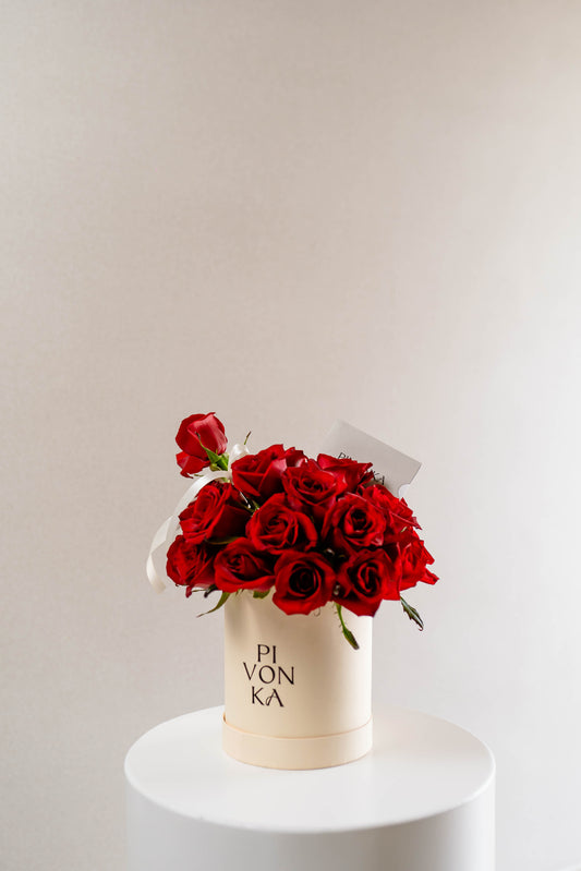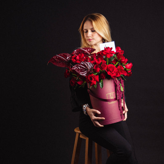 CAJA REDONDA CHAMPAGNE ROSAS ROJAS