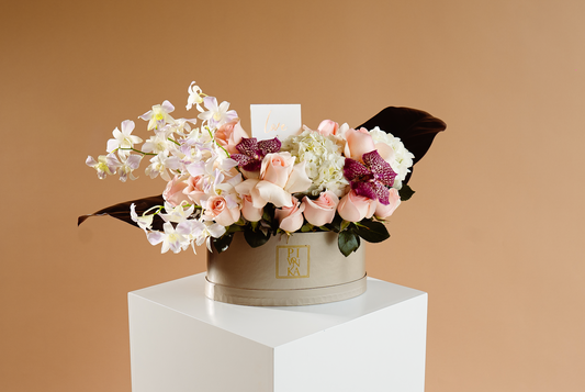 CAJA BEIGE CON ROSAS EN CÍRCULO