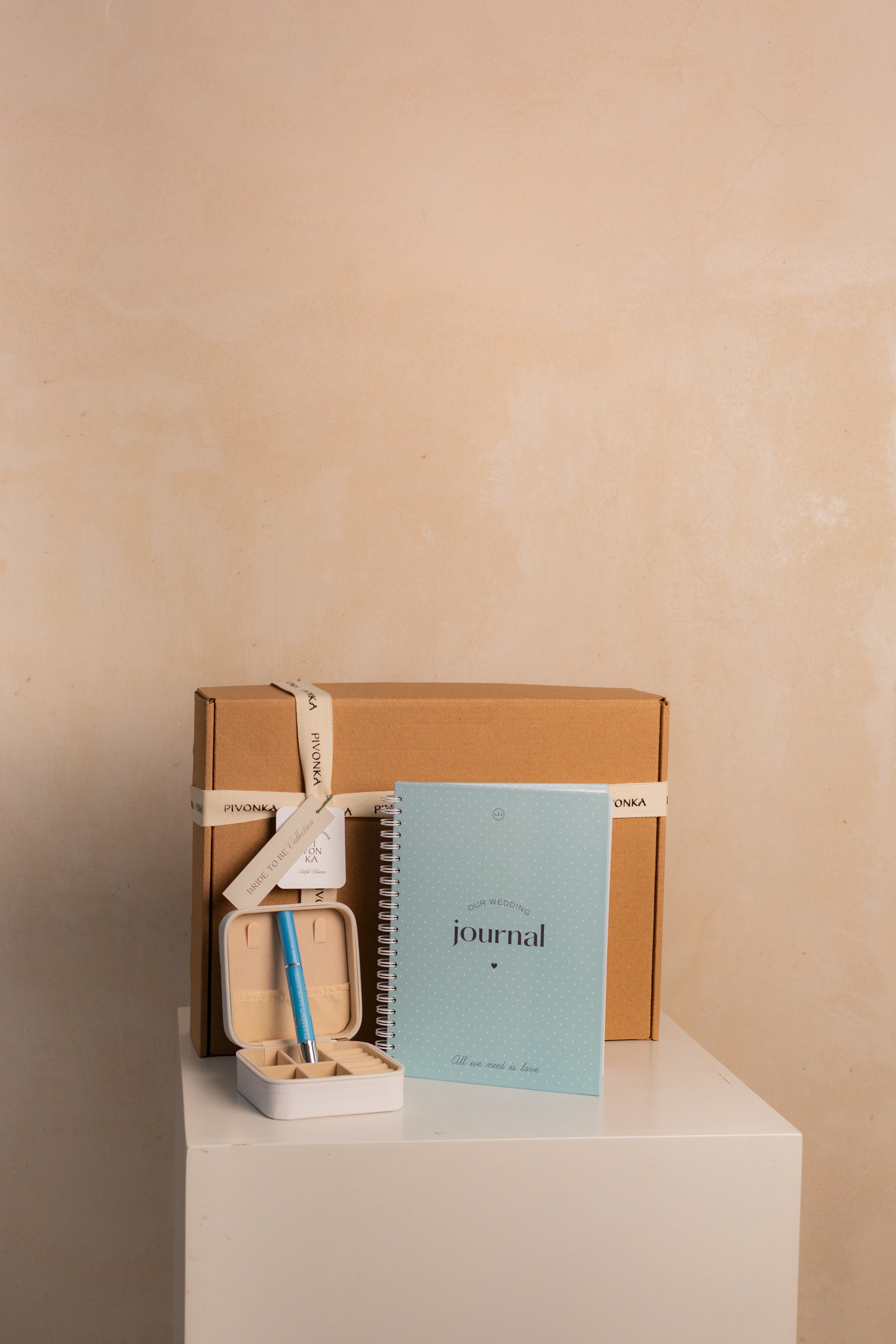 INCLUYE: THE WEDDING JOURNAL + JOYERO DE VIAJE + LIMPIADOR DE ANILLO.
